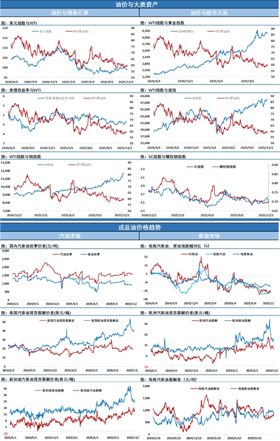 周二油價繼續(xù)下跌,雖然歐洲時段油價有嘗試組織反彈,烏克蘭總統(tǒng)澤連斯基表示,在過去兩周于日內瓦、莫斯科和邁阿密舉行的多輪談判后,烏方當前正與合作伙伴就三份核心文件展開磋商,文件內容分別涉及框架性約定、安全保障以及戰(zhàn)后重建三大領域,另外澤連斯基稱如果俄羅斯同意,烏克蘭已準備好實現能源?;?。委內瑞拉方面,有消息稱特朗普政府秘密制定計劃,為馬杜羅下臺做準備,市場對此也密切關注可能的地緣擾動。但在沒有足夠刺激力度的消息面前,油價日內反彈很持續(xù),不足以改變周一大跌后的趨弱節(jié)奏,夜盤時段油價再次回落延續(xù)了下跌走勢。