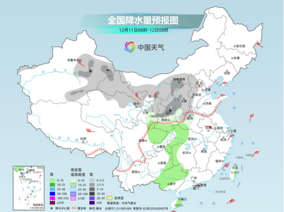 在這次寒潮過程中,由于水汽條件較好,我國將出現(xiàn)大范圍的雨雪天氣,這將是立冬以來最大規(guī)模的雨雪天氣。預(yù)計今起至13日,新疆、西北地區(qū)、華北、黃淮中北部、內(nèi)蒙古中部及東北地區(qū)中南部等地有小到中雪或雨夾雪,部分地區(qū)有大雪,新增積雪深度2至8厘米,局地可達(dá)10至15厘米;四川盆地、江漢、黃淮南部及其以南地區(qū)有小到中雨,局地大雨。
