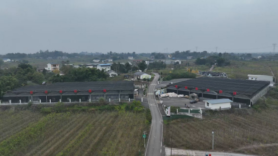 航拍猛山鄉(xiāng)萬(wàn)民村集體經(jīng)濟(jì)菌場(chǎng)