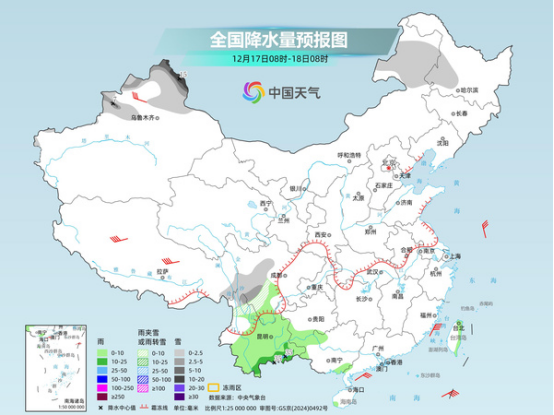 16日之后受南支槽東移影響,西南、華南陰雨天氣會有所增多。其中,西南地區(qū)南部、廣西西北部和東南部等地部分地區(qū)有小到中雨,云南東南部局地有大雨。同時,內蒙古東北部、黑龍江西南部、新疆北疆北部、川西高原中南部、云南西北部等地部分地區(qū)有小到中雪或雨夾雪。