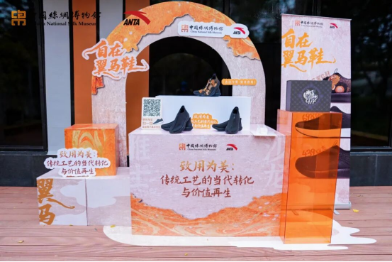 “雅士沙龍”也是中國絲綢博物館攜手安踏集團發(fā)起“致敬二十四雅士,弘揚中華文化”活動的重要組成部分之一,二者共同開發(fā)的聯(lián)名款文創(chuàng)“自在翼馬鞋”當天也亮相展示區(qū),吸引眾多觀眾駐足觀看。