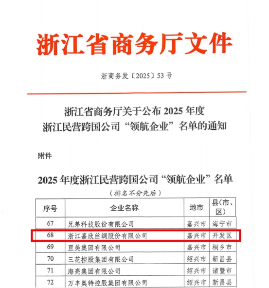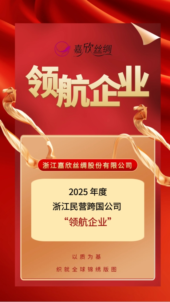 近日,浙江省商務(wù)廳公布 2025 年度浙江民營跨國公司 “領(lǐng)航企業(yè)” 名單,嘉欣絲綢憑借卓越的跨國經(jīng)營能力、全產(chǎn)業(yè)鏈全球布局優(yōu)勢及深厚品牌影響力成功入選。