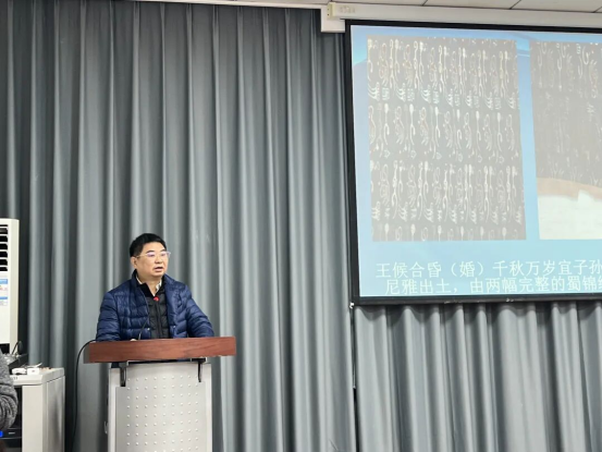 2025年12月18日,四川隆重紀念國寶“五星出東方利中國”蜀錦出土30周年專題座談會在四川省絲綢科學研究院舉行。本次座談會由四川省絲綢科學研究院主辦、四川省嫘祖蜀錦蜀繡研究開發(fā)中心、四川順成紡織品有限公司、成都同興德線業(yè)有限公司承辦,邀請了來自文博機構、高校、行業(yè)協(xié)會、企業(yè)及地方文化單位的專家學者與業(yè)界代表,共計70余人參加。四川電視臺文旅頻道、四川文化網(wǎng)、八禾網(wǎng)、中國蜀錦文化網(wǎng)等媒體到場報道。與會代表圍繞國寶級文物“五星出東方利中國”錦護臂出土三十周年的歷史意義、學術價值以及蜀錦蜀繡在當代的保護、傳承與創(chuàng)新發(fā)展等議題,展開了深入研討。