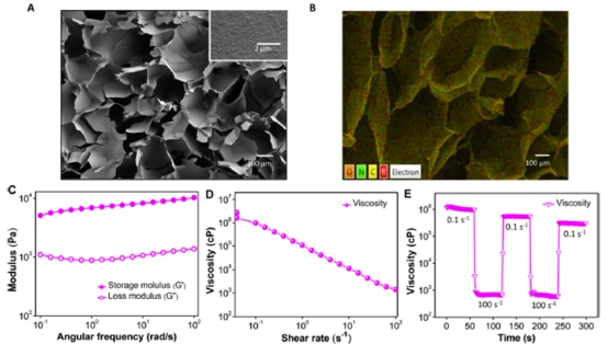 圖2.SFBH的微觀形態(tài)、元素分布及流變性能表征圖