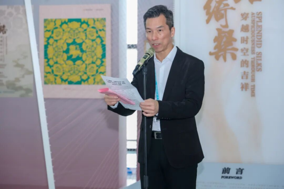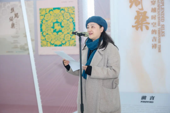 開幕式上,中國(guó)絲綢博物館館長(zhǎng)季曉芬向大家介紹特展的策展思路與“把吉祥中國(guó)帶回家”公眾體驗(yàn)活動(dòng)的核心計(jì)劃。并表示絲綢是中華優(yōu)秀傳統(tǒng)文化的璀璨瑰寶,吉祥紋樣則承載著古人對(duì)美好生活的向往與追求。此次與杭州蕭山國(guó)際機(jī)場(chǎng)攜手,不僅是將博物館的專業(yè)展覽“搬出館舍”,更是通過“把吉祥中國(guó)帶回家”系列社教活動(dòng),讓非遺技藝、吉祥文化走進(jìn)大眾日常生活,讓每一位旅客都能成為絲綢文化的體驗(yàn)者、傳承者與傳播者。