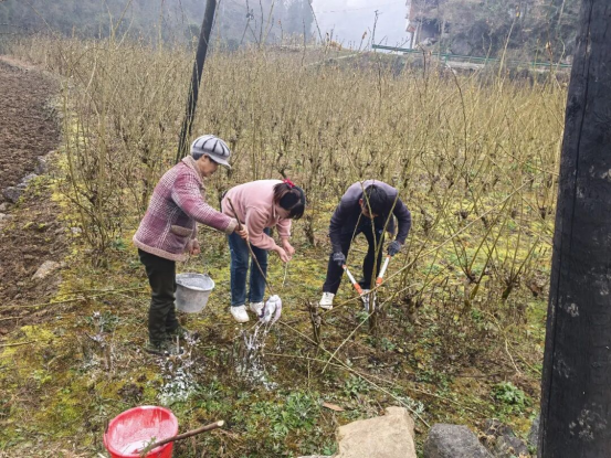 冬日的石泉縣高興村桑園中,寒意雖濃,卻難掩農(nóng)戶們辛勤勞作的熱忱。眾人分工明確、配合默契,有的手持修枝剪,精準(zhǔn)剪除病弱枝與過密枝,優(yōu)化桑樹樹形;有的提著石灰桶,手持刷子,細(xì)致地為桑樹主干均勻刷上石灰水;還有的翻耕土壤、清除雜草,從源頭減少病蟲害滋生。這些忙碌的身影交織,共同繪就了一幅生動的冬日田園勞作圖景。