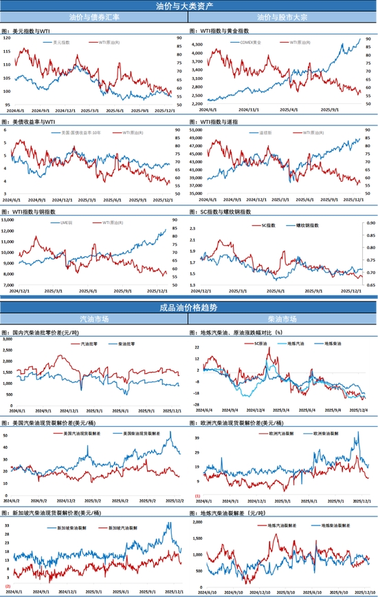 EIA在美東時(shí)間周一下午5點(diǎn)(北京時(shí)間周二早上6點(diǎn))發(fā)布了周度原油庫(kù)存報(bào)告。該報(bào)告原定于北京時(shí)間29日夜間公布。報(bào)告顯示至12月19日當(dāng)周EIA原油庫(kù)存 40.5萬(wàn)桶,高于預(yù)期的降庫(kù)243.2萬(wàn)桶。另外汽柴油也不同程度累庫(kù),數(shù)據(jù)偏離空,盡管數(shù)據(jù)顯示有輕微累庫(kù)表現(xiàn),但12月份是原油市場(chǎng)下半年供應(yīng)過(guò)剩最下的時(shí)間窗口,從Kpler的庫(kù)存數(shù)據(jù)可以看出12月原油市場(chǎng)累庫(kù)力度較小,這給了地緣因素足夠的炒作空間。不過(guò)隨著時(shí)間近入2026年1月之后供應(yīng)過(guò)剩壓力將再次增加繼續(xù)施壓。不過(guò)有消息顯示哈薩克斯坦、委內(nèi)瑞拉出口均明顯的低于預(yù)期,這已經(jīng)影響到上游原油生產(chǎn)量,這可能讓原油市場(chǎng)過(guò)剩壓力有一定改善??傮w來(lái)短期內(nèi)油價(jià)波動(dòng)將繼續(xù)隨著地緣層面的擾動(dòng)進(jìn)行,而原油市場(chǎng)供應(yīng)過(guò)剩壓力仍是決定油價(jià)低點(diǎn)的最核心因素。預(yù)計(jì)年內(nèi)剩余時(shí)段油價(jià)將維持低位拉鋸,技術(shù)上油價(jià)有回落修復(fù)需求,不建議繼續(xù)追漲,后期油價(jià)大概率會(huì)有反復(fù),注意節(jié)奏把握。