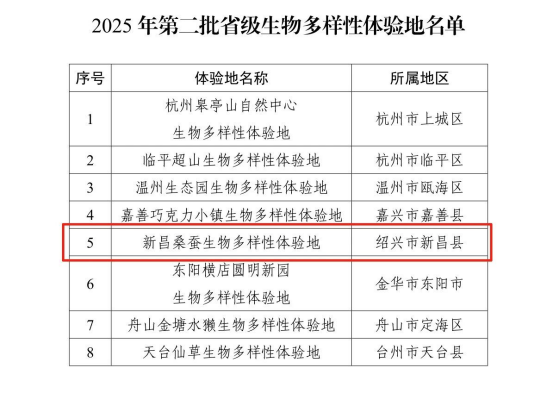 近日,浙江省生態(tài)環(huán)境廳公布了2025年第二批省級(jí)生物多樣性體驗(yàn)地入選名單,達(dá)利絲綢(浙江)有限公司的蠶桑生物多樣性體驗(yàn)地成功入選。