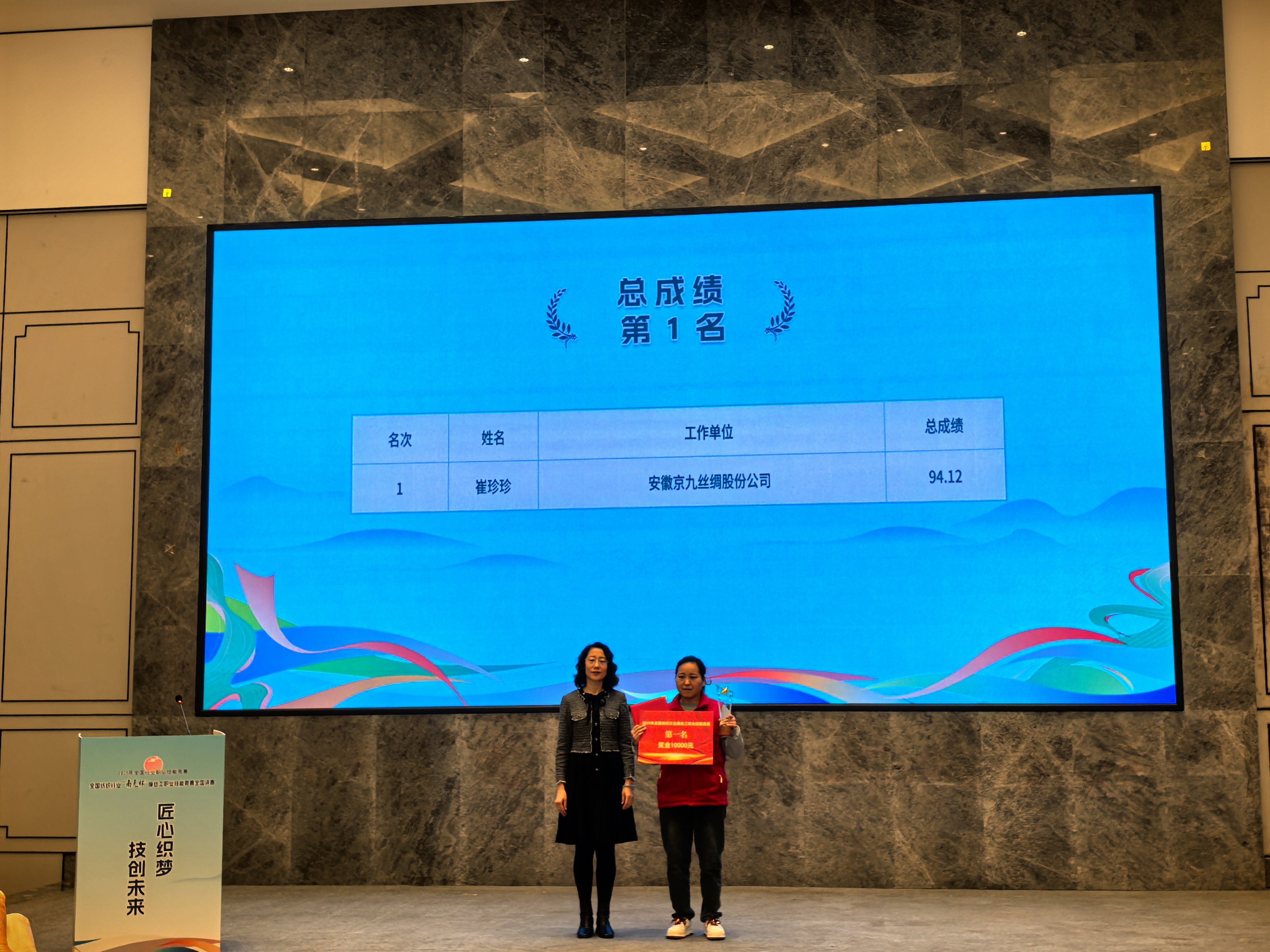 捷報傳來,榮耀綻放!近日,2025年全國行業(yè)職業(yè)技能競賽——全國紡織行業(yè)“南充杯”繅絲工職業(yè)技能競賽全國決賽在四川省儀隴縣圓滿落幕。安徽京九絲綢股份公司2名選手不負眾望,在全國頂尖工匠的巔峰對決中勇奪佳績,崔珍珍斬獲總成績?nèi)珖谝幻S娟娟摘得穿瓷眼單項全國第一名,用精湛技藝為京九絲綢、為阜陽贏得至高榮譽!