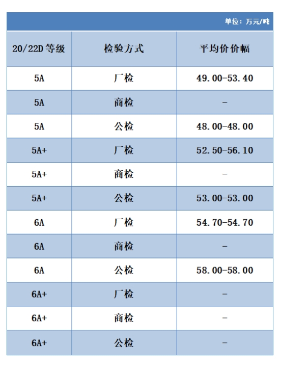 本周高品位生絲協(xié)作單位成交價(jià)格區(qū)間