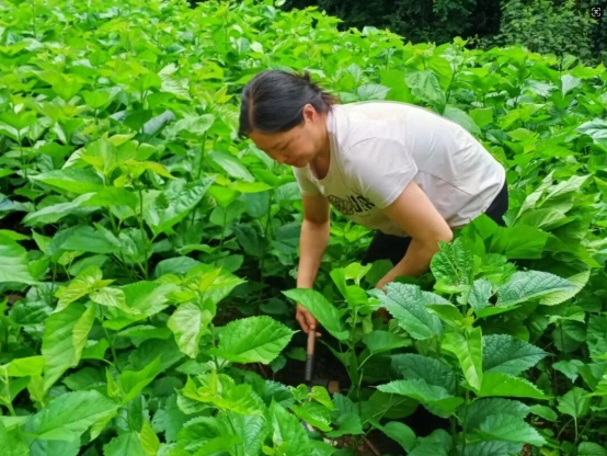 今年41歲的蔡梅,是一位從貴州遠(yuǎn)嫁到田蓬鎮(zhèn)田房行政村麻呼小組的農(nóng)村婦女,僅有初中學(xué)歷的她,早年間為養(yǎng)家糊口,曾與丈夫常年在外務(wù)工,一年僅在春節(jié)回家一次。2018年,為照顧年邁的父母和年幼的孩子,蔡梅與丈夫毅然決定回鄉(xiāng)。當(dāng)年底,她在自家林地上試種10畝禾桑,開啟了桑蠶養(yǎng)殖創(chuàng)業(yè)之路。