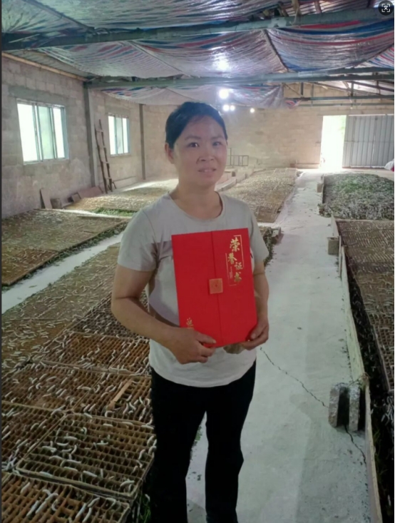 創(chuàng)業(yè)初期并非一帆風(fēng)順,資金短缺曾讓她犯難。鎮(zhèn)村婦聯(lián)及時(shí)對(duì)接政策,2021年幫助其申請(qǐng)到15萬(wàn)元農(nóng)村婦女創(chuàng)業(yè)貸款。這筆“及時(shí)雨”讓她建成600平方米標(biāo)準(zhǔn)化廠房,實(shí)現(xiàn)了“桑葉種植—蠶繭養(yǎng)殖—統(tǒng)一銷售”的全流程管理。2023年養(yǎng)殖年收入達(dá)15萬(wàn)元,一舉成為田蓬鎮(zhèn)規(guī)?;N桑養(yǎng)蠶的“標(biāo)桿”,“蠶娘”的名號(hào)也隨之在十里八鄉(xiāng)傳開,2023年12月蔡梅被富寧縣婦聯(lián)評(píng)為富寧縣農(nóng)村致富帶頭人。