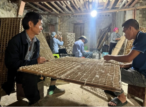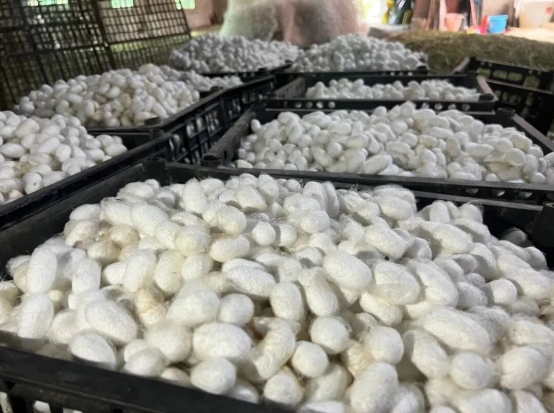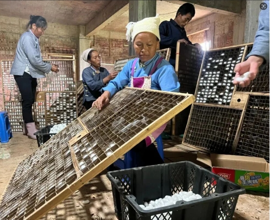 通過(guò)黨建聯(lián)建平臺(tái),兩地整合資源開展“實(shí)訓(xùn)聯(lián)學(xué)”,采取“院壩課堂+田間課堂+生產(chǎn)基地”模式,組織農(nóng)技專家、種植能手深入一線傳授技術(shù),改變過(guò)去“單打獨(dú)斗”的局面。如今,田房村及周邊村寨桑樹種植面積達(dá)2000余畝,養(yǎng)蠶戶達(dá)240余戶,蠶繭年產(chǎn)量近2萬(wàn)公斤,形成了“房前屋后種桑樹、農(nóng)家庭院搞養(yǎng)殖”的特色產(chǎn)業(yè)格局,桑蠶產(chǎn)業(yè)成為名副其實(shí)的“富民產(chǎn)業(yè)”,不僅富了群眾的口袋,更暖了鄉(xiāng)親們的心田。
