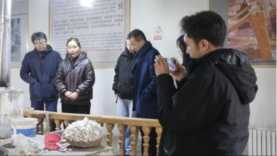 主題采訪團(tuán)一行了解艾德萊斯綢的傳統(tǒng)手工織造技藝