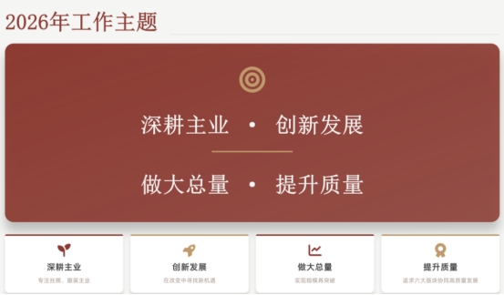會上,徐鴻總裁系統(tǒng)宣貫了《2026年嘉欣絲綢工作思路》,明確以“深耕主業(yè)、創(chuàng)新發(fā)展、做大總量、提升質(zhì)量”為工作主題。