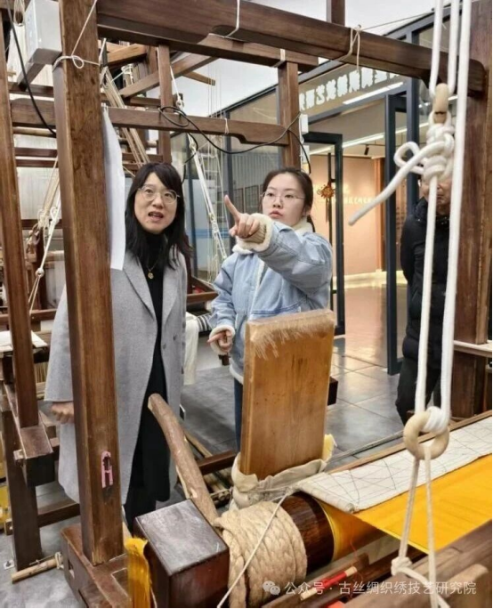 交流環(huán)節(jié)中,王燕教授與丁國(guó)強(qiáng)老師對(duì)研究院在傳統(tǒng)絲綢文化傳承與創(chuàng)新方面的豐碩成果給予高度評(píng)價(jià),他們表示,此次參觀不僅深度領(lǐng)略了中華絲綢文化的深厚底蘊(yùn),更真切看到了年輕一代傳承非遺技藝的飽滿熱情與責(zé)任擔(dān)當(dāng)。大家圍繞“傳統(tǒng)織造技藝與高校藝術(shù)設(shè)計(jì)教育融合路徑”“美育課程中絲綢文化的植入策略”等議題展開(kāi)深入探討,雙方均期待未來(lái)能搭建長(zhǎng)效合作平臺(tái),推動(dòng)傳統(tǒng)絲綢文化在新時(shí)代煥發(fā)蓬勃生機(jī)。