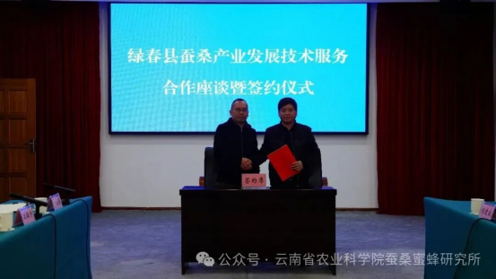 下午,耿玲德一行與綠春縣委副書記馬俊、農(nóng)業(yè)農(nóng)村和科學(xué)技術(shù)局局長(zhǎng)李晨辰等有關(guān)領(lǐng)導(dǎo),就綠春縣蠶桑產(chǎn)業(yè)發(fā)展問題開展座談交流。會(huì)上,馬俊副書記詳細(xì)了解了桑苗氣候適應(yīng)、桑樹生長(zhǎng)周期、病蟲害防治、蠶室建設(shè)標(biāo)準(zhǔn)、蠶臺(tái)搭建規(guī)范、種養(yǎng)關(guān)鍵技術(shù)及蠶繭回收機(jī)制等關(guān)鍵問題。耿玲德表示,蠶蜂所會(huì)充分發(fā)揮蠶??蒲袃?yōu)勢(shì),統(tǒng)籌人才、平臺(tái)、技術(shù)、渠道等方面的資源,全程指導(dǎo)、全力支持綠春縣蠶桑產(chǎn)業(yè)發(fā)展,幫助其實(shí)現(xiàn)從“0”到“1”的突破。本著“共享共贏、風(fēng)險(xiǎn)共擔(dān)、互惠互利”的原則,經(jīng)友好協(xié)商,雙方達(dá)成共識(shí),綠春縣將充分依托在資金、土地、組織管理等方面優(yōu)勢(shì),與蠶蜂所齊心協(xié)力,共同在當(dāng)?shù)靥剿靼l(fā)展蠶桑產(chǎn)業(yè),建立桑樹種植示范基地和桑蠶養(yǎng)殖示范點(diǎn),打造綠春縣鄉(xiāng)村振興助農(nóng)增收特色示范點(diǎn),推動(dòng)綠春縣特色產(chǎn)業(yè)發(fā)展實(shí)現(xiàn)“十五五”良好開局,為鄉(xiāng)村振興戰(zhàn)略實(shí)施貢獻(xiàn)農(nóng)科力量。