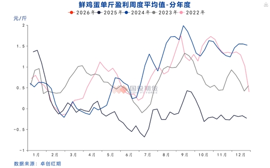 從行業(yè)利潤角度來看,2025年蛋雞養(yǎng)殖全年幾乎都在虧損,僅年初及9月蛋價反彈期間實(shí)現(xiàn)小幅盈利,其余時間均在虧損。由于養(yǎng)殖虧損的持續(xù),2025年下半年養(yǎng)殖端補(bǔ)欄情緒和上半年相比發(fā)生了逆轉(zhuǎn)。