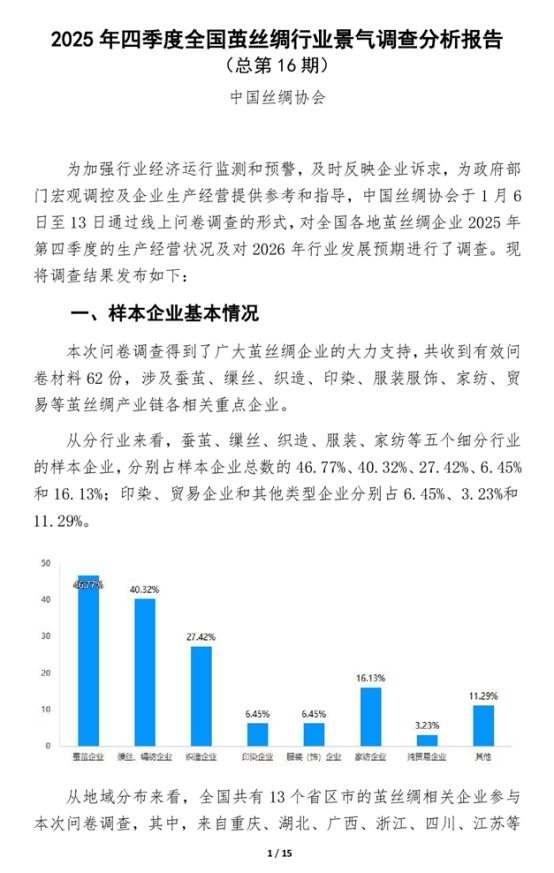 行業(yè)數(shù)據(jù)丨中國(guó)絲綢協(xié)會(huì)發(fā)布《2025年四季度全國(guó)繭絲綢行業(yè)景氣調(diào)查分析報(bào)告》
