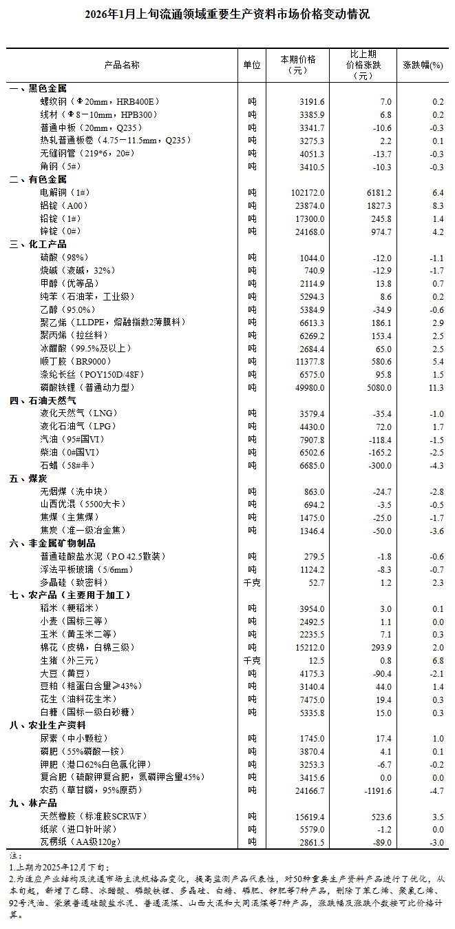 2026年1月上旬流通領(lǐng)域重要生產(chǎn)資料市場(chǎng)價(jià)格變動(dòng)情況
