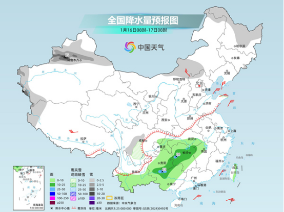 明天,新疆北部和南疆西部山區(qū)、內(nèi)蒙古中部、黑龍江中北部、川西高原北部等地部分地區(qū)有小到中雪或雨夾雪,其中,伊犁河谷山區(qū)和南疆西部山區(qū)等地部分地區(qū)有大到暴雪;湖北南部、江南中西部、重慶中部、貴州、云南中南部、廣西中西部等地部分地區(qū)有小到中雨,局地有大雨。