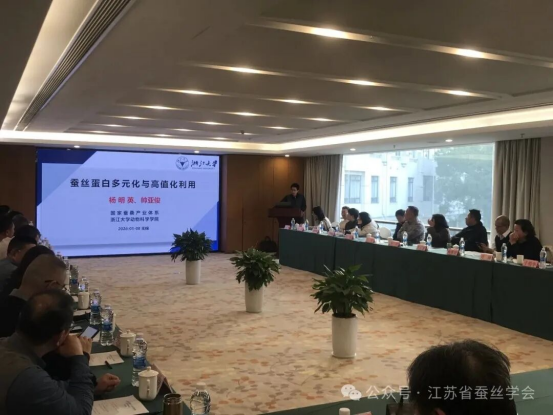 近日,江蘇省蠶絲學(xué)會在無錫舉辦專題學(xué)術(shù)報(bào)告會,圍繞“飼料養(yǎng)蠶技術(shù)”與“蠶絲蛋白高值化開發(fā)”兩大主題展開交流。學(xué)會理事長周謙出席本次會議,學(xué)會理事、智庫專家及蠶絲行業(yè)科技工作者等近50人參會。學(xué)術(shù)報(bào)告會由學(xué)會副理事長、蘇州大學(xué)貢成良教授主持。