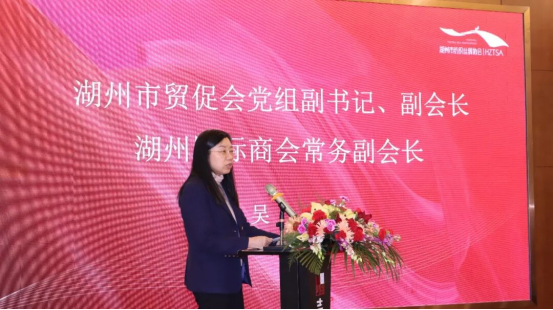湖州市貿(mào)促會黨組副書記、副會長、湖州國際商會常務(wù)副會長吳靜致辭