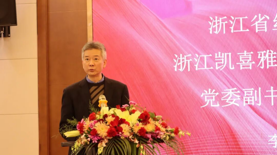 浙江省絲綢協(xié)會會長、浙江凱喜雅國際股份有限公司黨委副書記兼紀(jì)委書記李振強(qiáng)致辭