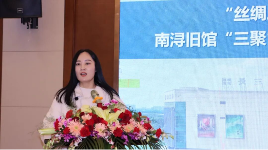 湖州市南潯區(qū)舊館街道黨工委委員凌慧琪作絲綢產(chǎn)業(yè)招商推介和經(jīng)驗(yàn)介紹
