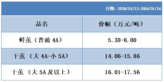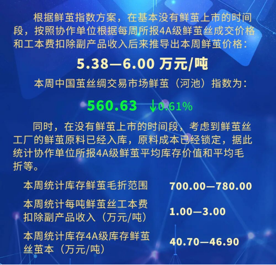根據(jù)本周蠶繭報價按照指數(shù)方案形成的基準(zhǔn)品價格區(qū)間
