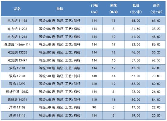 本周綢緞指數(shù)協(xié)作單位成交價格區(qū)間