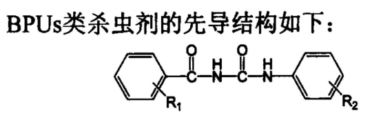 苯甲酰脲類殺蟲劑(BPUs)是以苯甲酰脲類化合物為基礎(chǔ)的殺蟲劑,通過對靶標(biāo)害蟲體內(nèi)幾丁質(zhì)進(jìn)行抑制,實(shí)現(xiàn)對靶標(biāo)害蟲進(jìn)行殺滅。苯甲酰脲類殺蟲劑對昆蟲的接觸殺作用很小,主要是通過胃毒作用來實(shí)現(xiàn)對害蟲的殺滅。殺蟲作用緩慢,在昆蟲蛻皮過程中發(fā)揮作用,一般用藥后至少3天害蟲才會(huì)死亡。對鱗翅目、鞘翅目以及同翅日昆蟲有較好的殺滅效果,同時(shí)對沒有幾丁質(zhì)的生物影響較小。