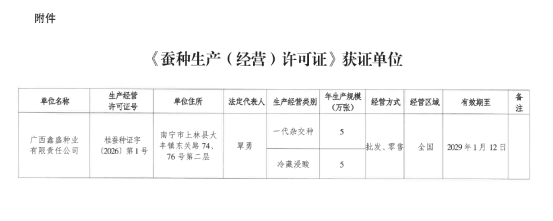 行業(yè)新聞丨廣西壯族自治區(qū)農(nóng)業(yè)農(nóng)村廳關(guān)于批準(zhǔn)發(fā)放蠶種生產(chǎn)(經(jīng)營(yíng))許可證的公告