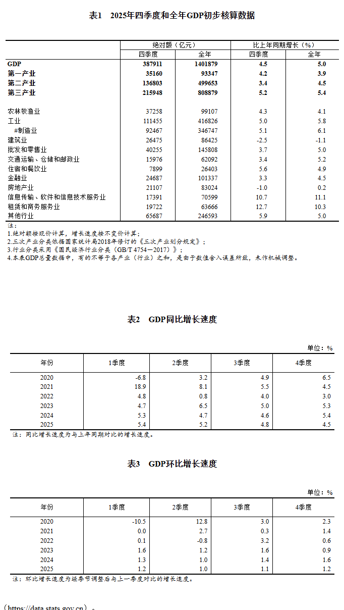 2025年四季度和全年國(guó)內(nèi)生產(chǎn)總值初步核算結(jié)果