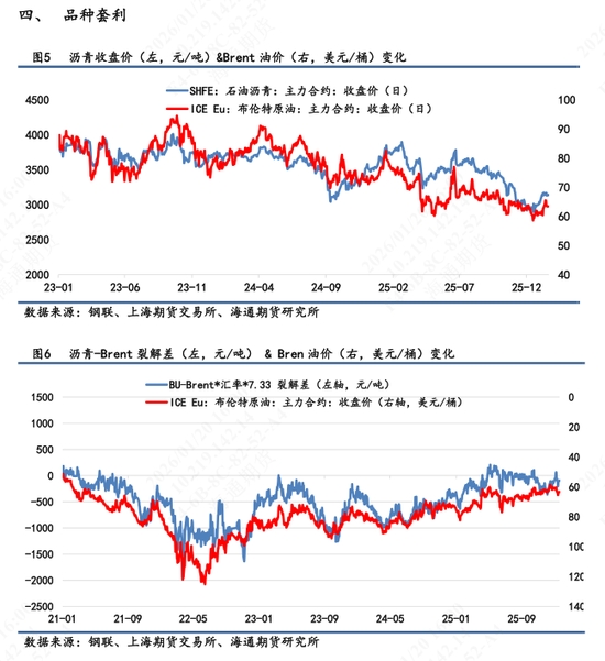 【3】短期展望:目前瀝青絕對價(jià)格再次出現(xiàn)馬杜羅被捕事件之后出現(xiàn)的二次跳空上漲,盡管跳漲幅度不及前次,但依舊表現(xiàn)出偏強(qiáng)性能。其中也是受油價(jià)波動(dòng)明顯,近期寒潮天氣影響帶動(dòng)天然氣暴漲,油價(jià)也跟隨短線走強(qiáng),同時(shí)美伊地緣仍處于反復(fù)摩擦階段,市場對此因素關(guān)注度也較高。因而成本端的上行也驅(qū)動(dòng)瀝青上漲動(dòng)能。只不過需要注意的是,比起SC日間收盤(1.20%)和燃料油(3495, -7.00, -0.20%)日間收盤(1.89%)的上漲幅度,瀝青的漲幅要更為積極,這也是在整體利好情況下,盤面也是計(jì)價(jià)放大了自身未來看漲預(yù)期的波動(dòng)。