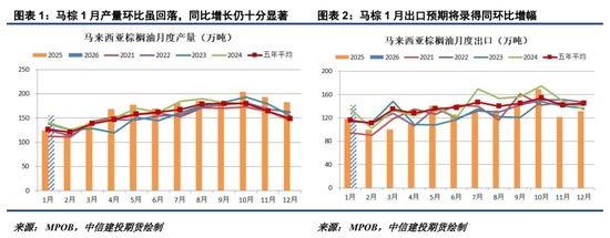此外,馬棕較好的產(chǎn)量表現(xiàn)及仍處于高位的庫存,亦對BMD毛棕櫚油漲勢帶來制約。MPOA預(yù)計馬棕1-20日產(chǎn)量較上月同期減少14.43%,SPP(7664, -18.00, -0.23%)OMA預(yù)計馬棕1-25日產(chǎn)量較上月同期減少14.81%,按照1月產(chǎn)量環(huán)比降15%左右測算,馬棕1月產(chǎn)量同比增幅高達25.44%,且156萬噸左右的產(chǎn)量仍處于歷史同期較高水平。近期棕櫚油價格的快速反彈確實刺激了需求國補庫,但在印尼3月提稅前搶出口的背景下,馬棕1月出口增長并沒有那么顯著。船運調(diào)查機構(gòu)ITS及AmsSpec預(yù)計馬棕1月1-25日出口較上月同期增7.97%-9.97%,若機構(gòu)預(yù)估與最終出口增幅偏差不大,則馬棕1月出口將落在140萬噸左右。在產(chǎn)量環(huán)比下降及出口環(huán)比增長的情況下,馬棕1月末庫存可能環(huán)比降20萬噸至285萬噸左右,雖有邊際改善卻仍處于同期高位。