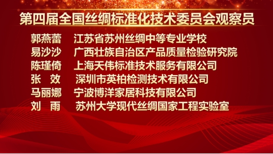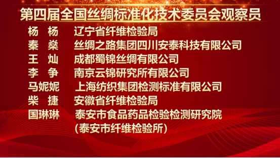 同時(shí)在會(huì)上宣讀聘任楊楊等20人為第四屆全國絲綢標(biāo)委會(huì)觀察員。