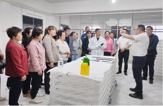 黨建引領,激活聯(lián)農益農動能。一是創(chuàng)新合作模式。推行“支部+鏈主企業(yè)+集體經濟+農戶”模式,整合閑置土地、校舍改造為共享蠶室,通過“設備租賃+吸納務工”帶動村集體與農戶雙增收。二是精準科技服務。技術服務有“溫度”,縣蠶桑中心開展黨員和技術干部“五送”服務(送政策、科技、農資、信息、服務),制作技術微視頻4期,發(fā)送服務短信30條,組織集中培訓1500人次,建立科技特派員、企業(yè)技術員、鄉(xiāng)村土專家(農秀才)“三位一體”服務體系,常年深入田間地頭、小蠶共育點和養(yǎng)蠶工廠,通過現(xiàn)場教學、蹲點服務、技術指導、實操演練,打通科技服務“最后一公里”,有效提升了蠶農養(yǎng)蠶水平。三是建立利益聯(lián)結。建立“支部+鏈主企業(yè)+農戶”的利益聯(lián)結,形成“六化”生產體系(小蠶共育智能化、大蠶飼養(yǎng)輕簡化等),石泉探索出“黨建引領+技術賦能+組織創(chuàng)新”發(fā)展路徑,為全縣蠶桑產業(yè)發(fā)展提供組織保障。
