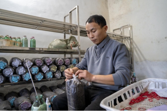 今年,基地計劃培育菌包40萬袋,預計年產值可達數(shù)百萬元。這里不僅是生產車間,更清晰展現(xiàn)了“桑枝收購—粉碎加工—制包育菌”的完整產業(yè)鏈,吸引了不少本地村民在家門口就業(yè)。