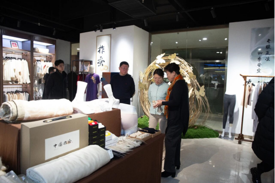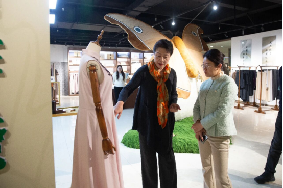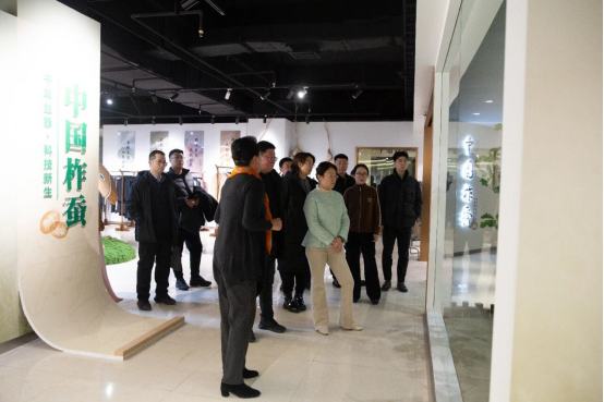 調(diào)研中,領(lǐng)導(dǎo)們沿著中國柞蠶展館動線,認(rèn)真觀看柞蠶歷史、文化、繅絲、織造、科技創(chuàng)新與綜合利用等展品、傳統(tǒng)技藝呈現(xiàn)及文化傳播相關(guān)情況,通過實物展示與圖文資料,直觀感受五千年柞蠶文化的深厚底蘊,柞蠶產(chǎn)業(yè)承載著歷史經(jīng)典技藝的傳承與使命。