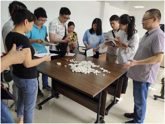 此次業(yè)務(wù)技能培訓(xùn)采取“理論知識”與“實際操作”相結(jié)合的方式進行,由市場倉儲部周青榮副經(jīng)理講授,圍繞著蠶繭和生絲結(jié)構(gòu)、烘繭工藝操作方法、不同品種蠶繭的挑選與區(qū)別、干繭、白廠絲進倉驗收方法、有問題莊口蠶繭的區(qū)分與處理、不同繭期和繭質(zhì)的日常管理方式、倉庫害蟲的識別與防治等方面進行講解與互動。