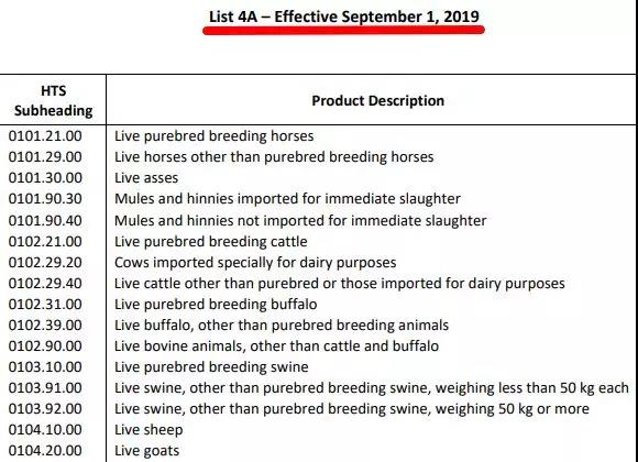 9月1日起,美國(guó)正式開(kāi)啟對(duì)中國(guó)商品的第四輪加稅,稅率為15%。第四輪加稅商品清單總計(jì)3000億美元,分為兩部分,List 4A為9月1日生效,List 4B為12月15日生效。