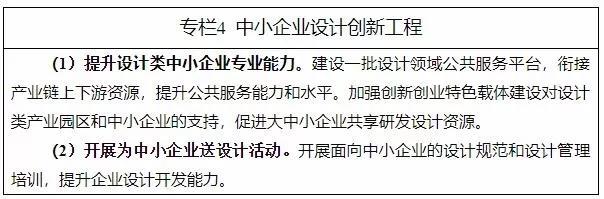 (九)促進設計類中小企業(yè)專業(yè)化發(fā)展。鼓勵有條件的地區(qū)加大財政投入,建立健全設計類中小企業(yè)公共服務平臺,打造產研對接的產業(yè)創(chuàng)新模式,獎勵各類重大設計創(chuàng)新成果,在資源共享、融資和人才服務等方面,支持設計類中小企業(yè)與相關企業(yè)開展對接合作。
