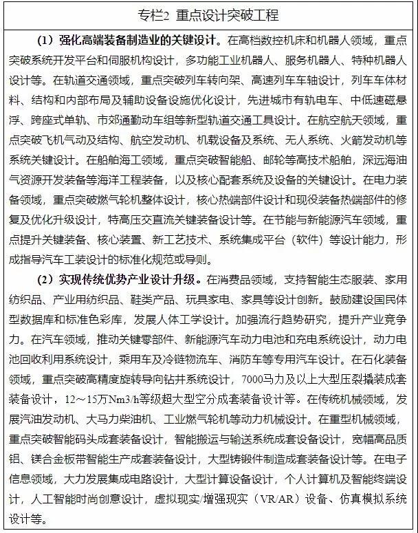 (四)提升傳統(tǒng)優(yōu)勢行業(yè)設計水平。運用新材料、新技術、新工藝,在輕工紡織、汽車、工程動力機械、電力裝備、石化裝備、重型機械和電子信息等具有一定比較優(yōu)勢的產業(yè),實現(xiàn)設計優(yōu)化和提升,推動傳統(tǒng)產業(yè)轉型升級。