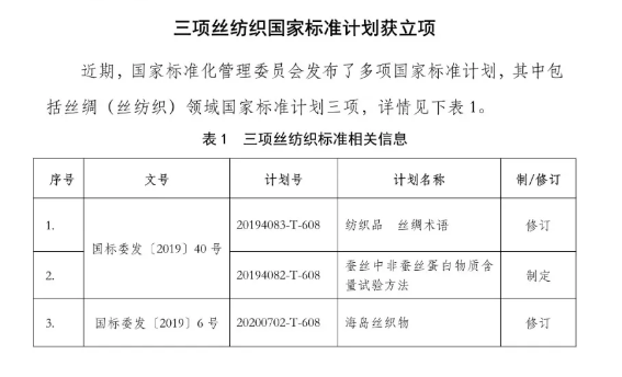 三項(xiàng)絲紡織國(guó)家標(biāo)準(zhǔn)立項(xiàng)