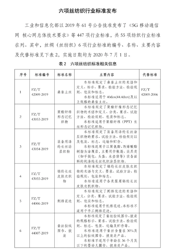 六項(xiàng)絲紡織行業(yè)標(biāo)準(zhǔn)發(fā)布