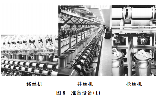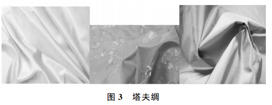 在織造前,還需做許多工作,我們稱準備工藝。如使絲膠軟化的浸漬、能改善產(chǎn)品性能的并絲和捻絲、定型、成絞、染色以及整經(jīng)、精絡等,不同產(chǎn)品的加工工藝流程不同。以塔夫綢為例:它的經(jīng)向和緯向的各需20多道工藝,這當中還不包括織造以后的綢面的檢驗、修補等等。塔夫綢見圖3。同時,由于蠶絲吸濕性強,還要做好防潮工作,現(xiàn)在的真絲綢生產(chǎn)都是在車間控制溫濕度條件下進行的。