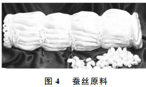 桑蠶絲也稱白廠絲、真絲、生絲,屬動物蛋白纖維。它由絲素和絲膠組成,是天然綠色環(huán)保纖維。常見規(guī)格有21.1/23.3dtex(19/21D)、22.2/24.2dtex(20/22D)、30.0/32.2dtex(27/29D)、44.4/48.9dtex(40/44D)等,特細絲有13/15D,產(chǎn)地為浙江、江蘇、四川、山東、廣東等地,蠶絲原料見圖4。