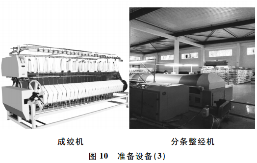 整經(jīng)是準備工藝中非常重要的環(huán)節(jié)。將絡絲筒管上的已加工好的絲,根據(jù)織物規(guī)格所需的經(jīng)絲數(shù)、長度、幅度要求,利用整經(jīng)機整成織品所需的經(jīng)線卷繞于經(jīng)軸上,每一個筒子上面都會有張力器,保證成千上萬根經(jīng)紗張力穩(wěn)定這是所有真絲梭織品必須經(jīng)過的工序,見圖10。