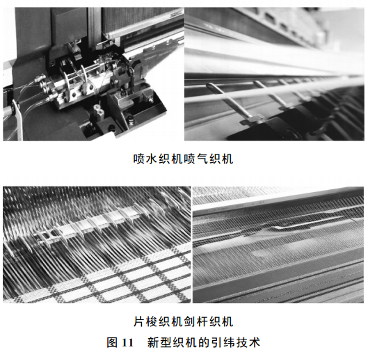 實際上現(xiàn)代織機發(fā)展非???,除在引緯技術上有噴氣、噴水織機,劍桿和片梭織機的智能化進一步提高,已經(jīng)逐步取代過去的有梭織機,見圖11。同時與之配套的電子提花機、電子多臂機、自動控制系統(tǒng),智能織造技術,紋樣快速設計、相關CAD軟件和織物模擬發(fā)展很快,可與織機相匹配。車間里每臺織機的織造數(shù)據(jù)、工藝參數(shù)、生產(chǎn)管理都可以通過中央控制器雙向傳輸實現(xiàn)控制和設定。現(xiàn)代織機及其配套設備智能化發(fā)展非???,而絲綢面料開發(fā)和生產(chǎn)工藝也在不斷地傳承和創(chuàng)新。